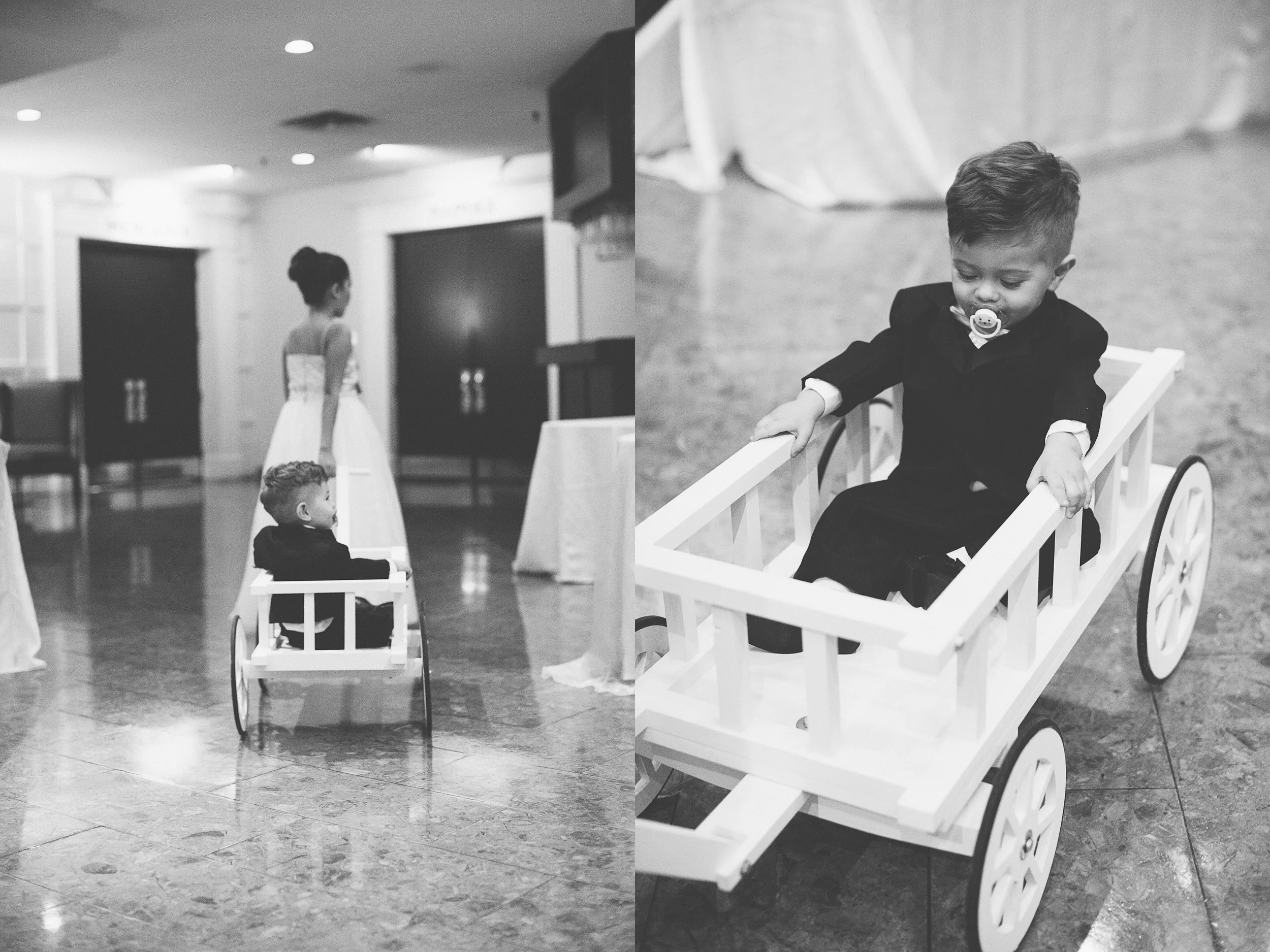+ Shayla's grandfather made a little wagon for Nik & Shayla's son to be pulled down in the aisle. He ended up sitting in it while being pulled by the maid of honour in a wagon ride down the aisle. This is a precious moment for any wedding photographer.