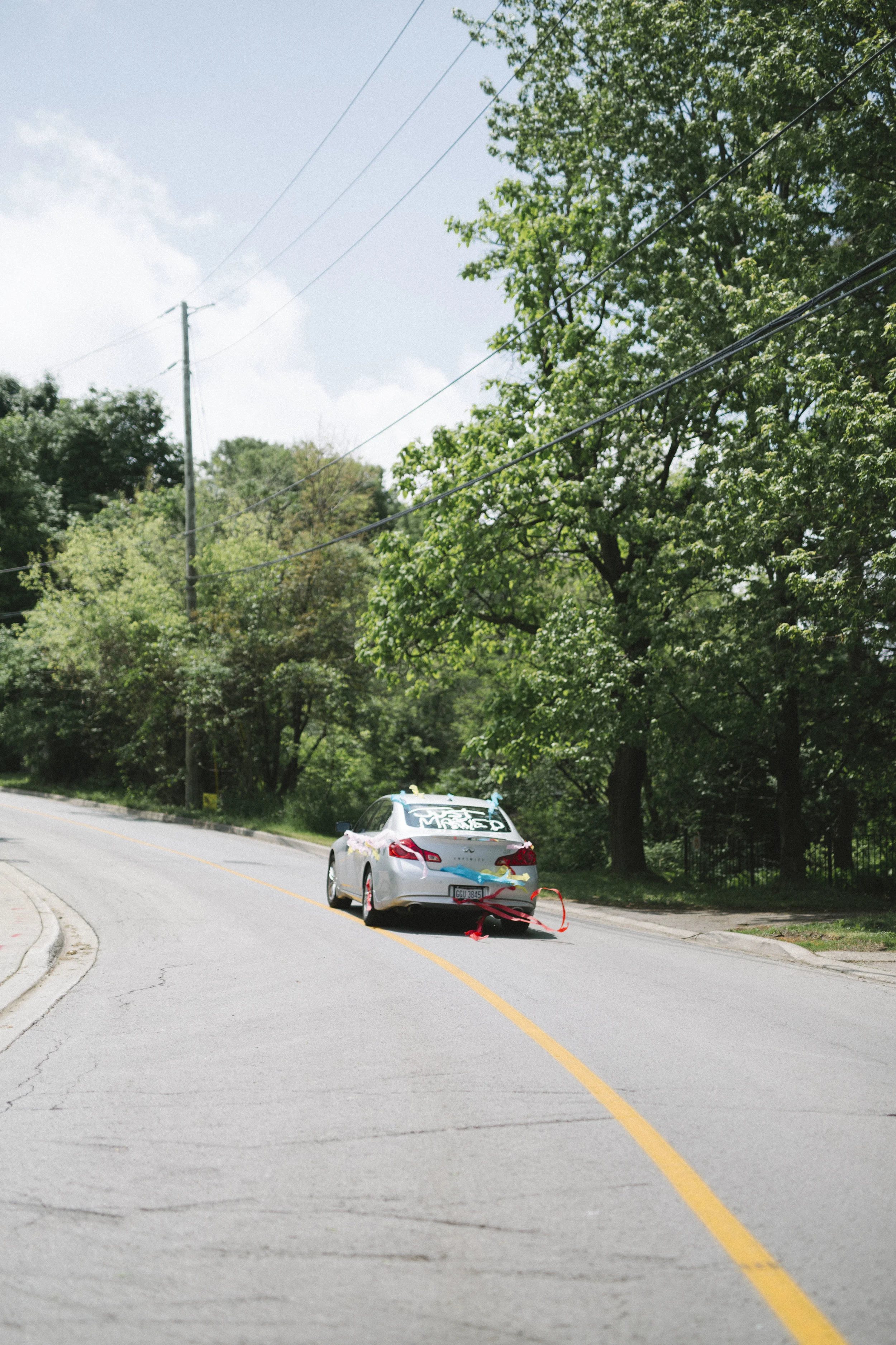 + The "Just Married" painted on their go-away car with silly string & the streamers blowing in the wind.